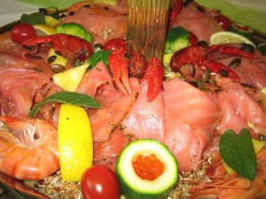 Gebeizter Lachs an Flusskrebsen